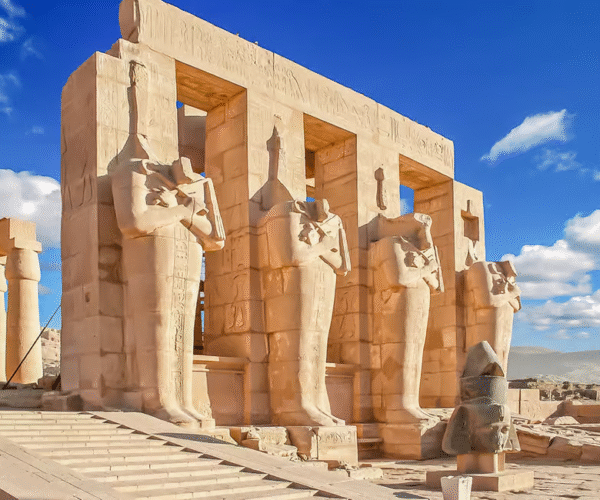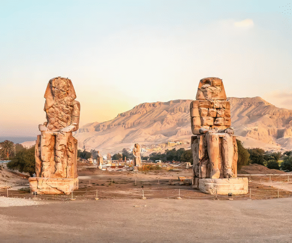 Visitez le magnifique temple de la reine Hatchepsout, dédié à la pharaonne emblématique d’Égypte, remarquable pour ses terrasses uniques et ses œuvres d’art parfaitement préservées. Arrêtez-vous ensuite aux Colosses de Memnon, deux statues imposantes gardant l’entrée antique du complexe du temple d’Amenhotep III.
