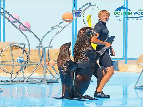 Dolphin World Show est l’attraction familiale en plein air la plus unique de la mer Rouge. Nous présentons des spectacles mettant en scène une variété d’animaux marins, dressés par une équipe composée des meilleurs dresseurs d’Afrique et du Moyen-Orient. Notre charmante famille de dauphins, morses et chats marins est présente chaque jour pour découvrir leur intelligence exceptionnelle et vous présenter de merveilleux spectacles de cirque.
